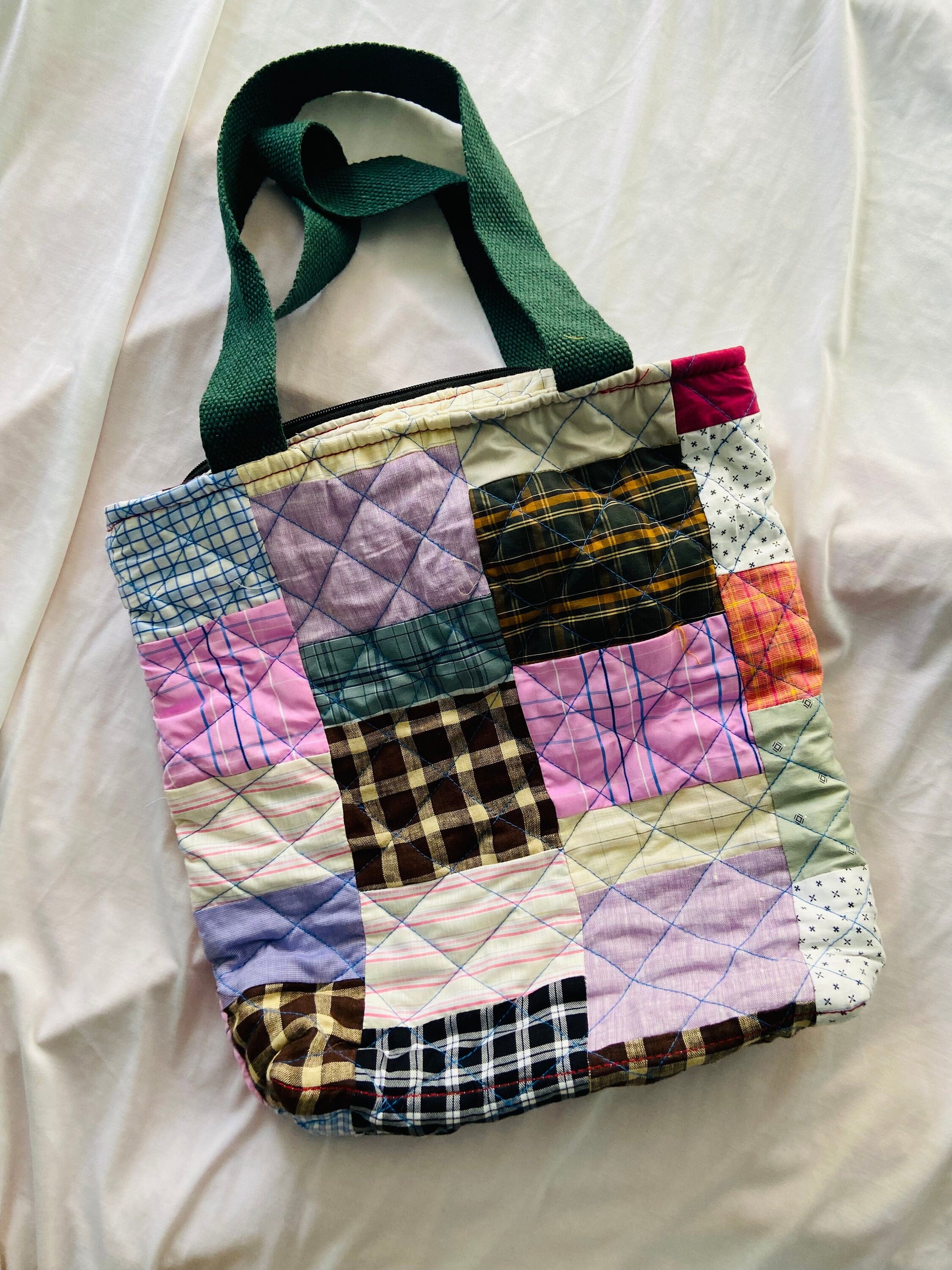Handmade Patchwork Quilted Tote Bag: Upcycled Market Bag
