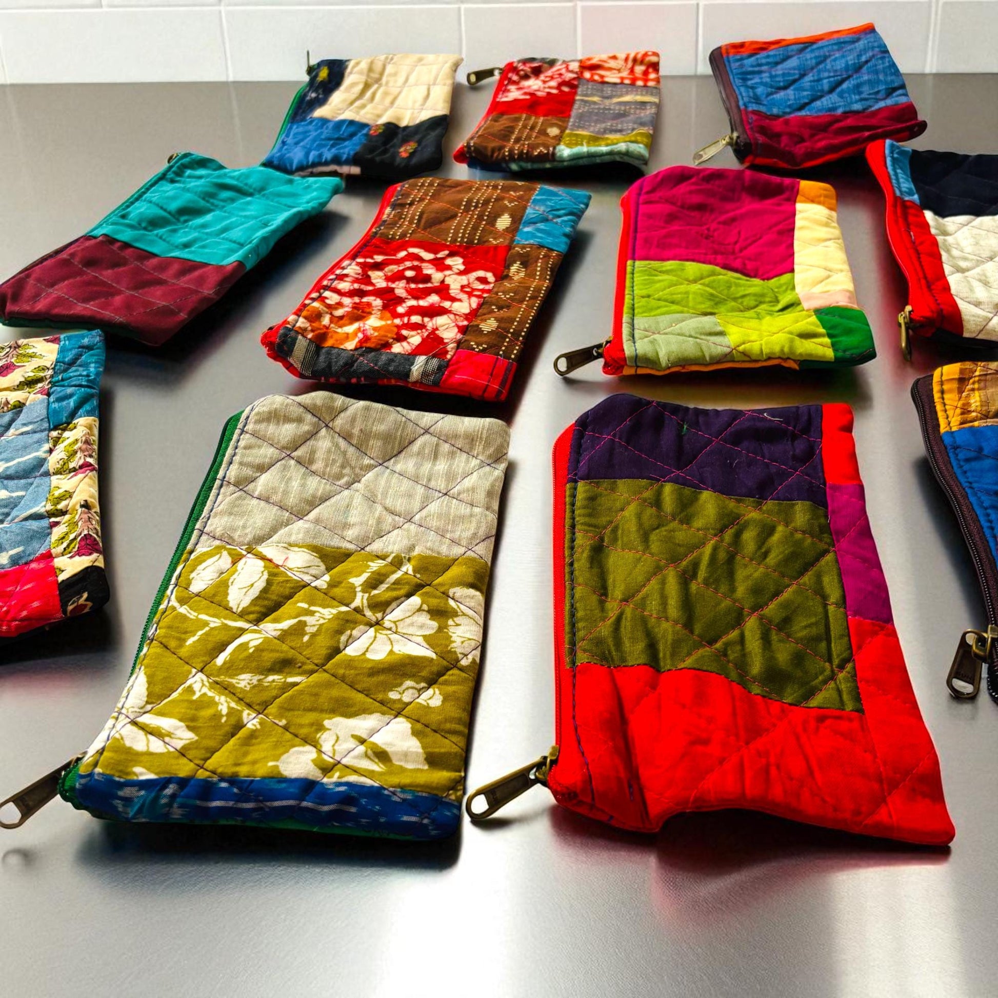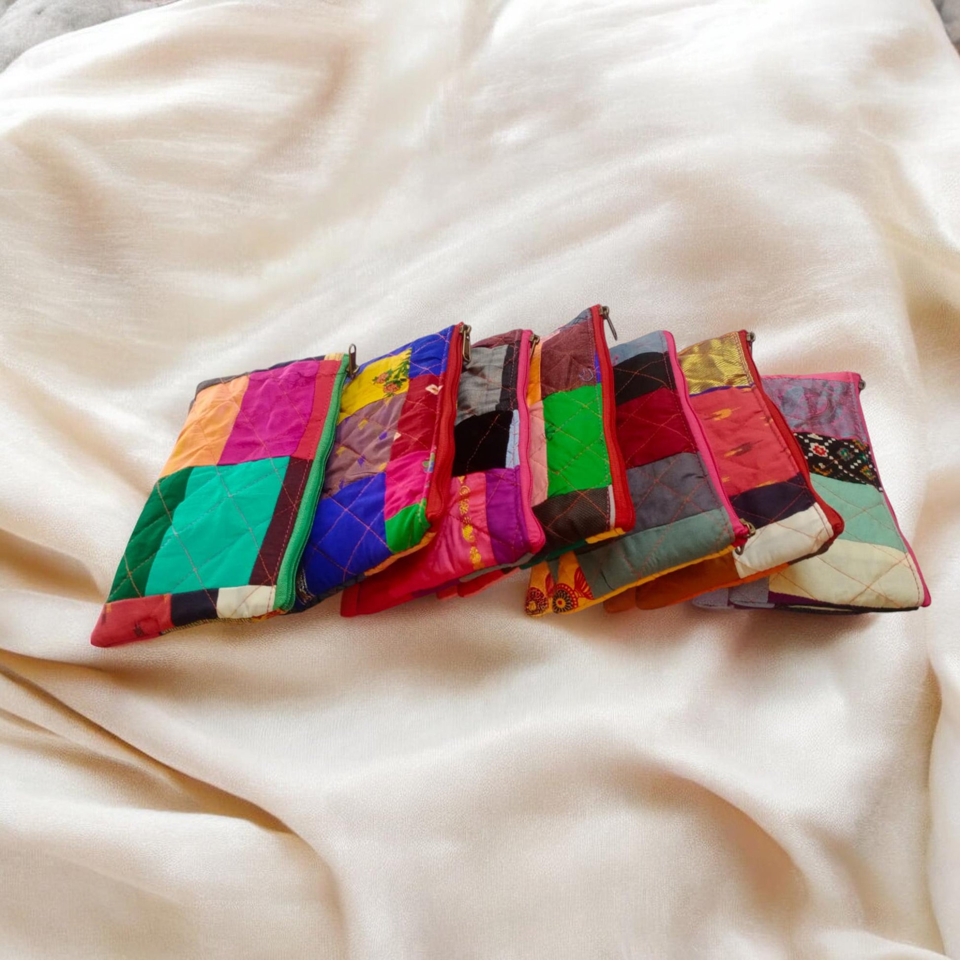 Pack of 10 Handmade Gift Pouches, Assorted bags with Zip closure, Travel and Storage Makeup Pouches, Wedding favors, Christmas