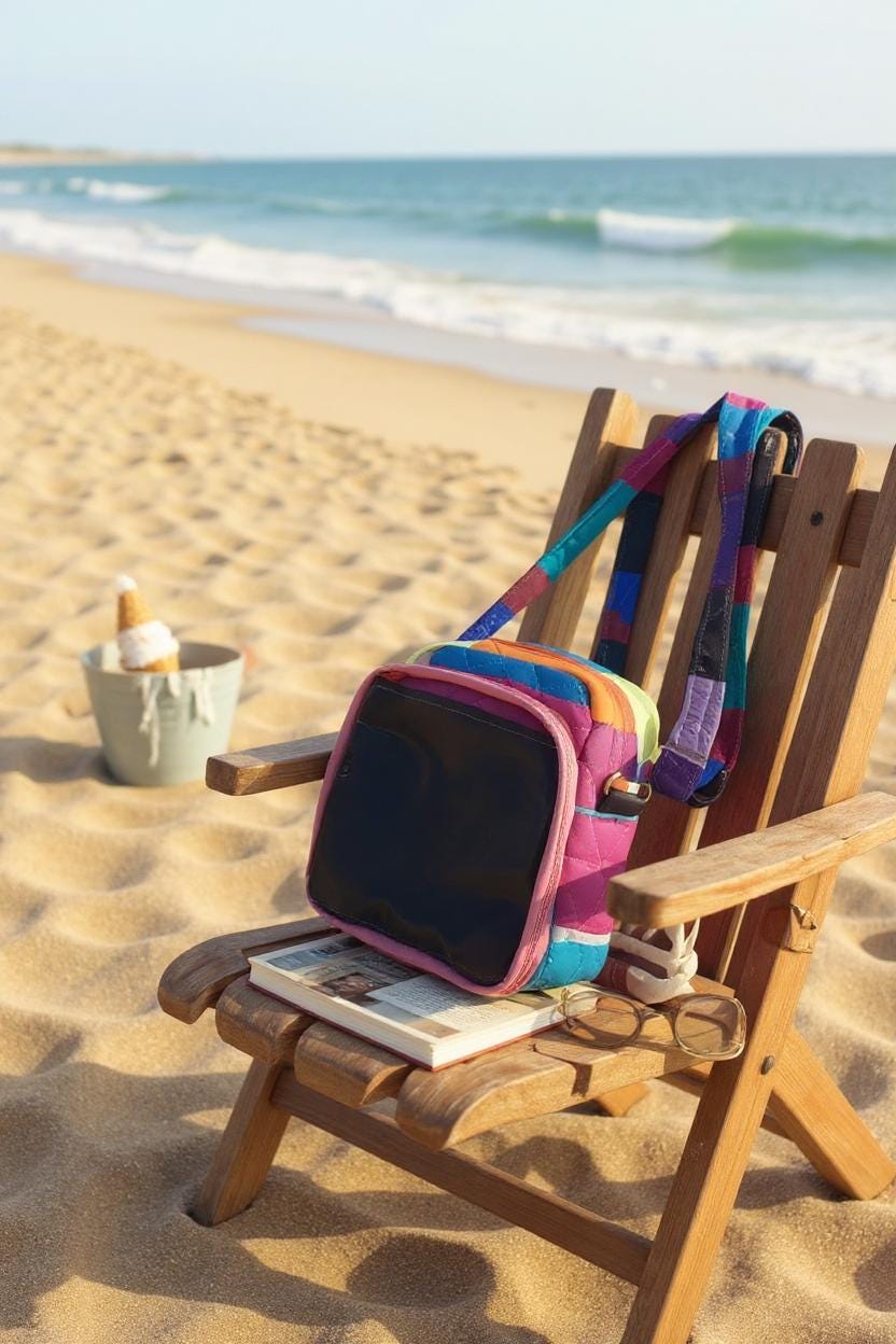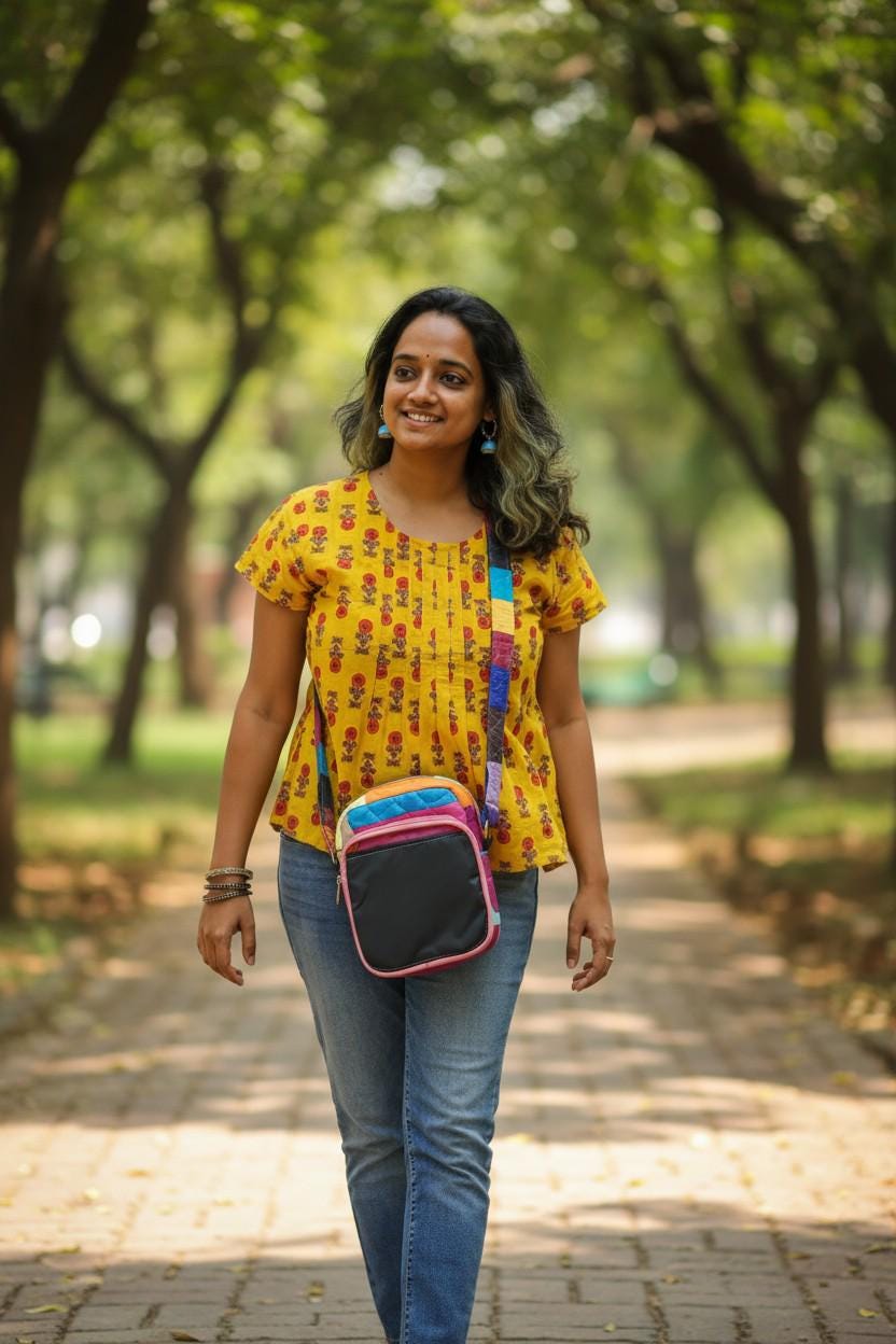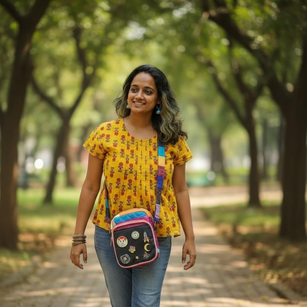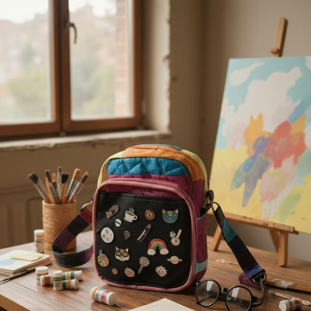 Multicolor solids pieces patchwork quilted to give you an Ita Cross body sling.
