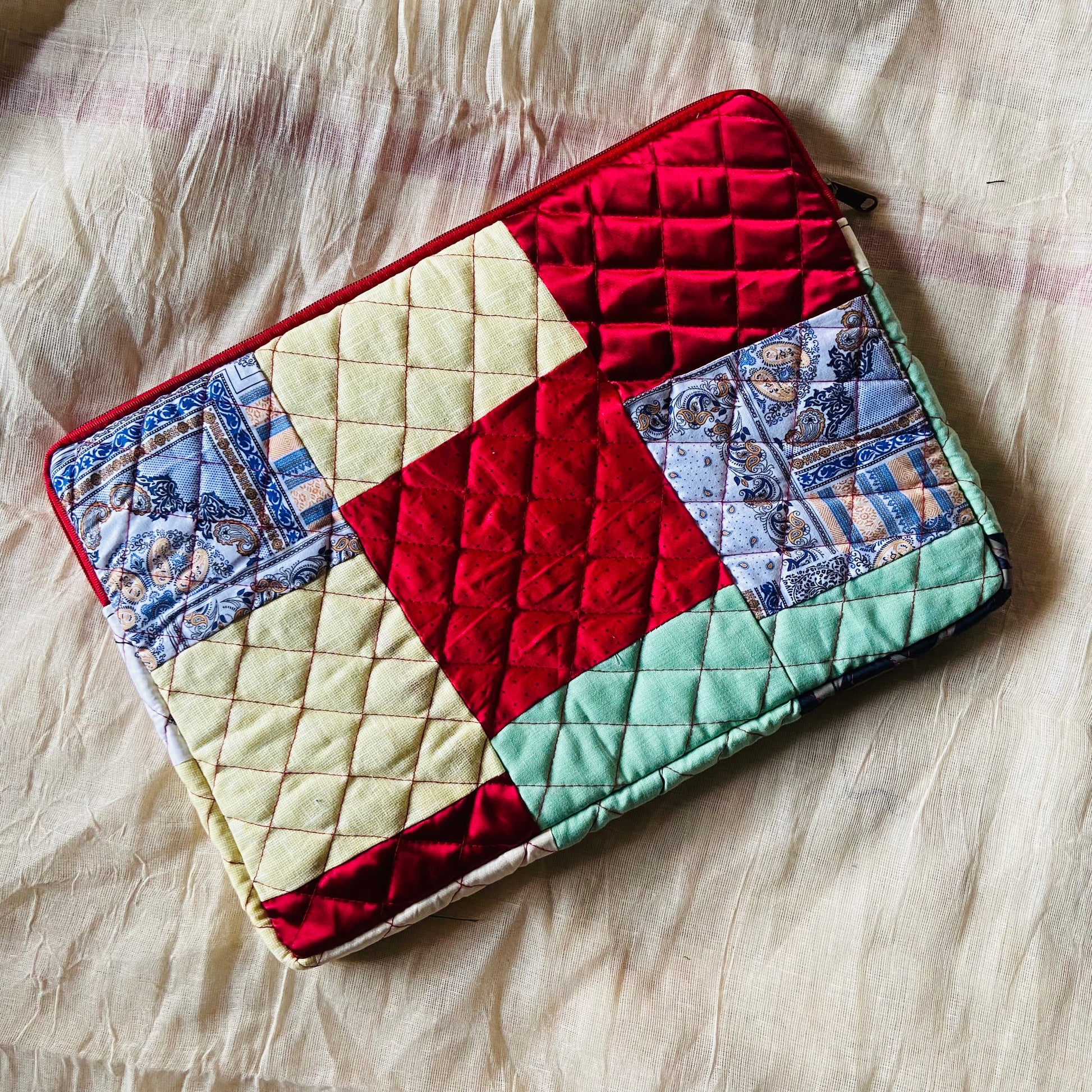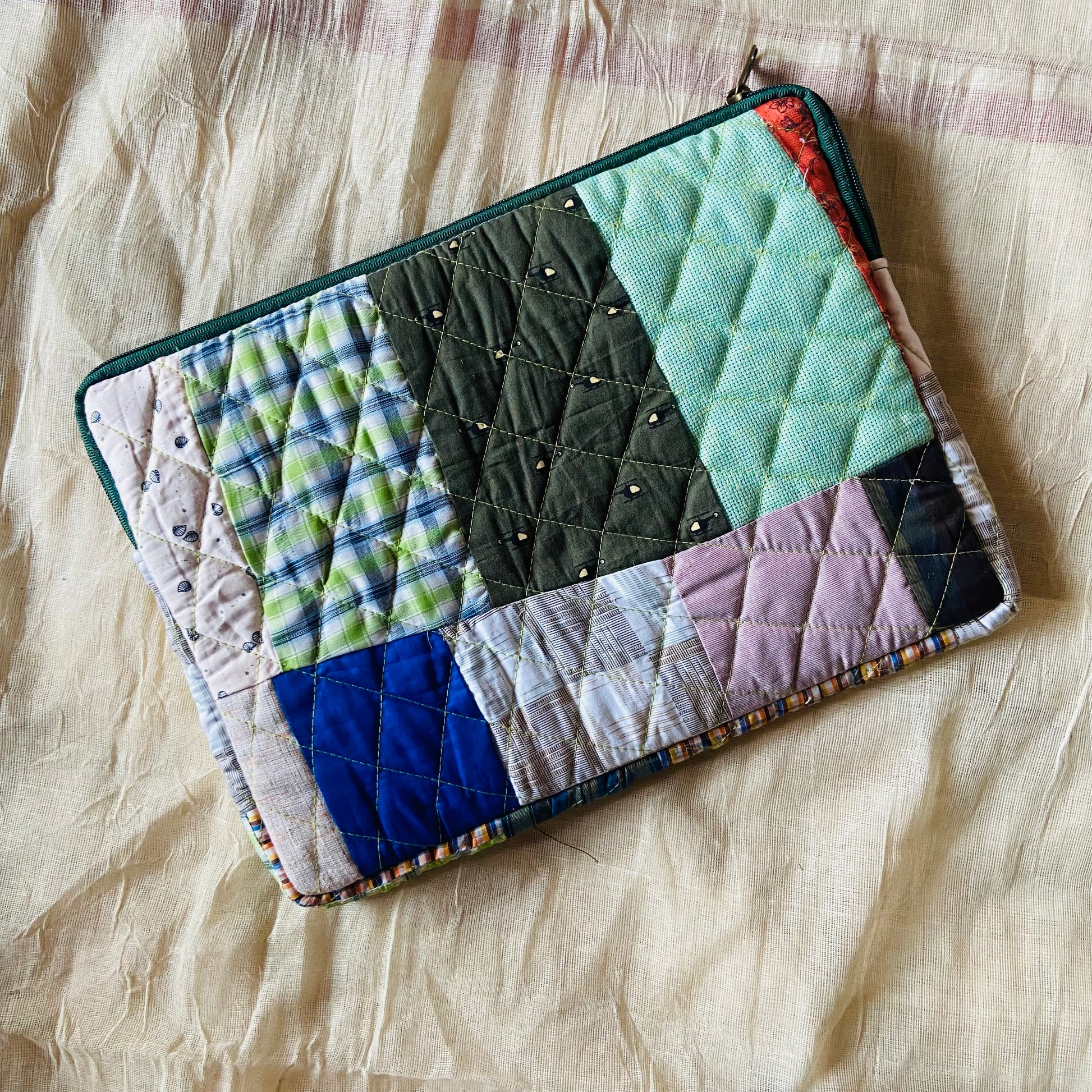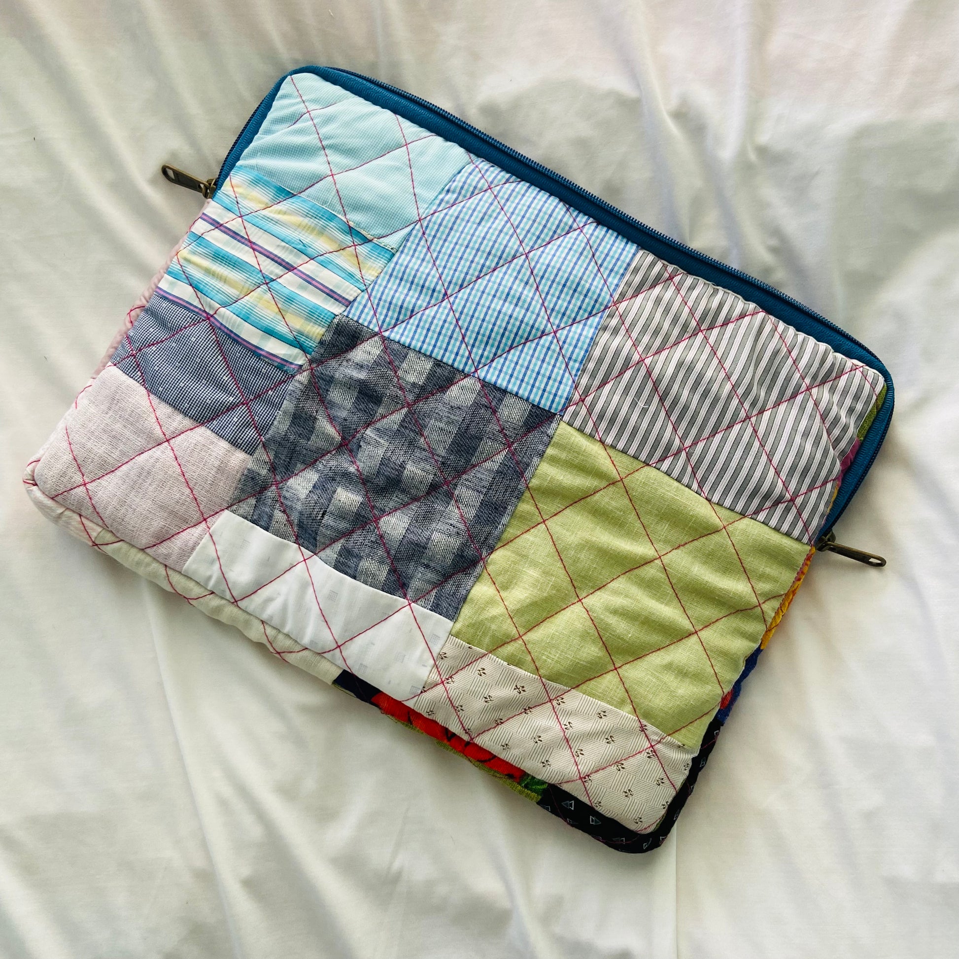 Plaids Stripes and Solids Patchwork Quilted Laptop Sleeve- 8 sizes available- Functional, Stylish
