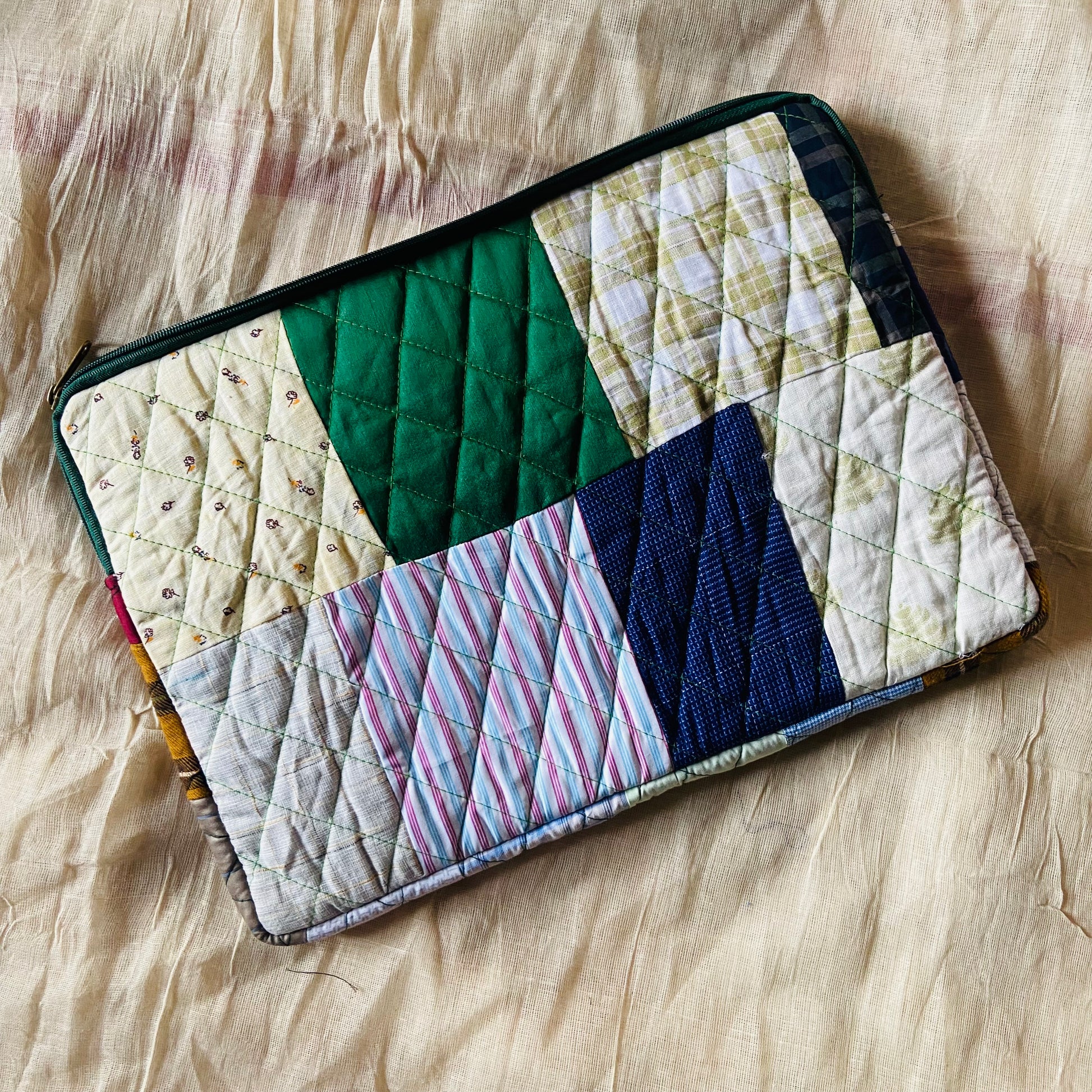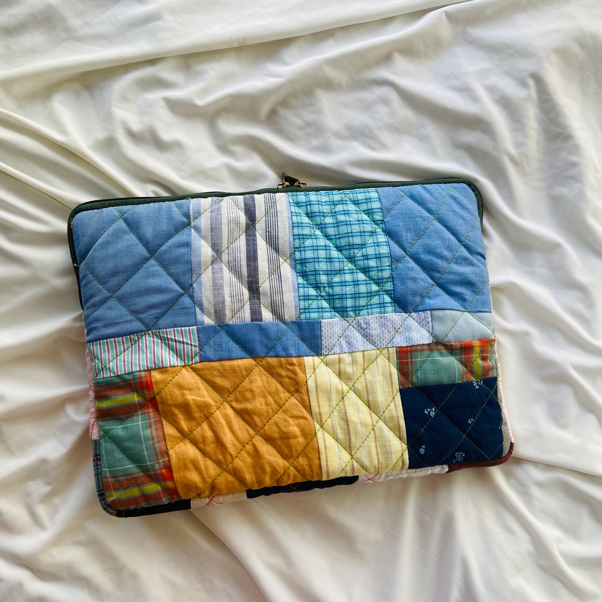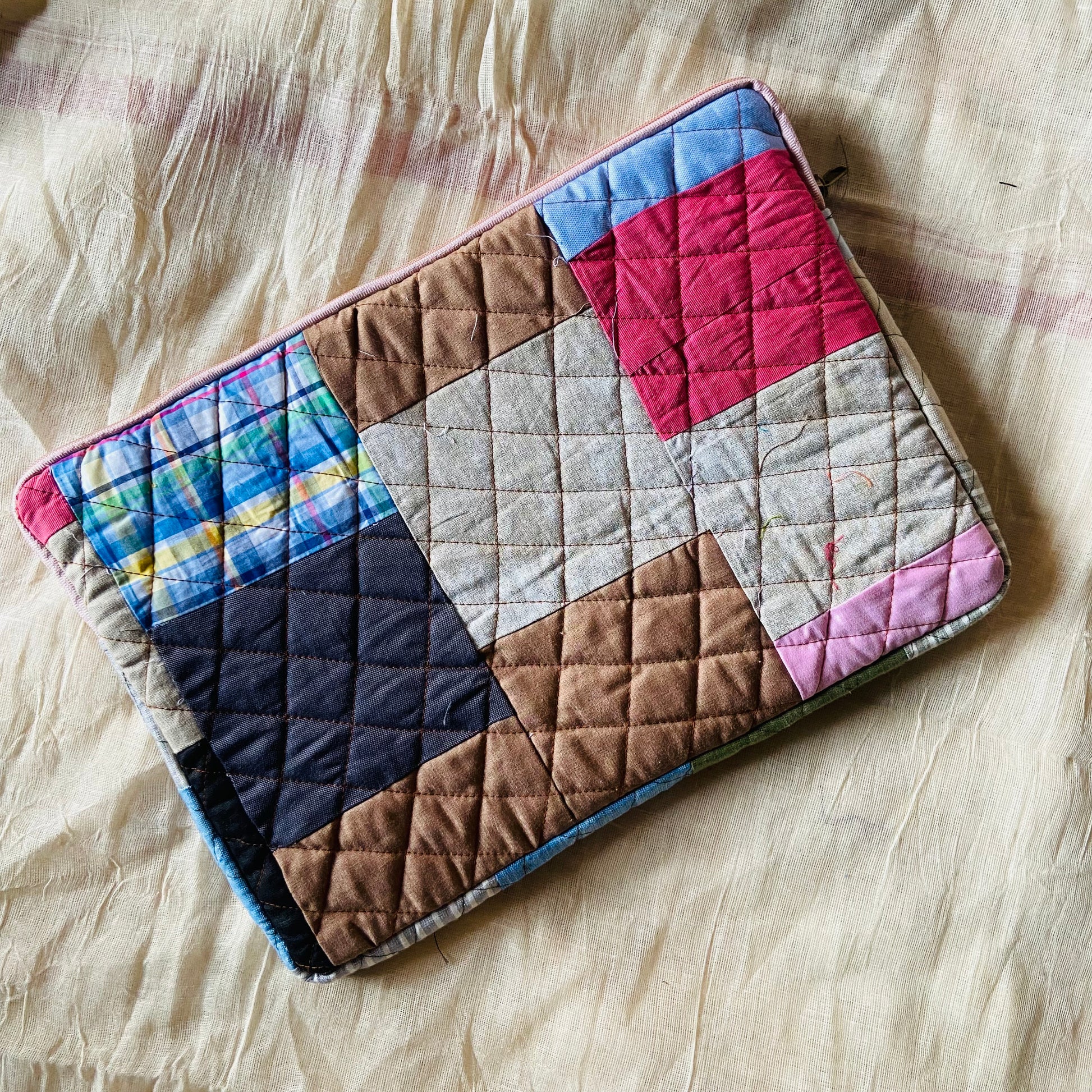 Plaids Stripes and Solids Patchwork Quilted Laptop Sleeve- 8 sizes available- Functional, Stylish